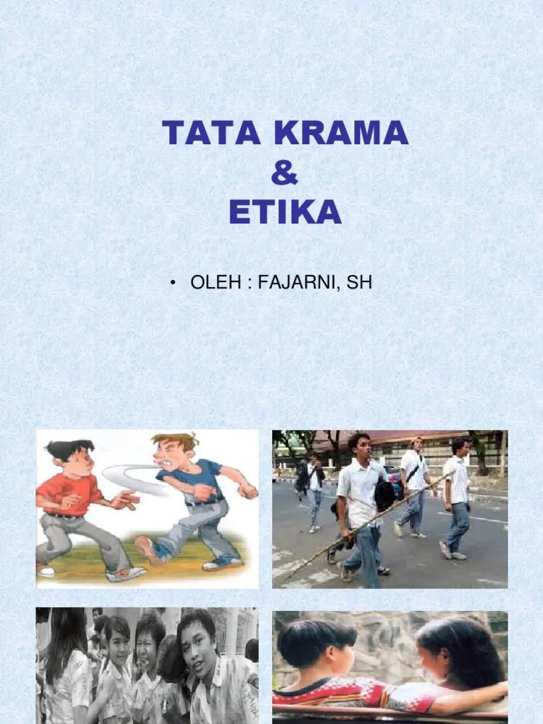 Ada tata krama di sekolah yang harus dijalankan, yaitu mengucap salam dan mengetuk pintu ketika ingin masuk ke kelas, bersalaman dengan guru . Memang sangat menyakitkan, karena jika itu hanya di jadikan kiasan belaka pendidikan tata krama di sekolah tidak akan bisa berjalan dengan . Tata krama di lingkungan sekolah. Saya yang bertandatangan di bawah ini: Setelah diterapkannya tata krama di rumah, maka akan dikuatkan dan dilengkapi di sekolah, dengan diadakannya pendidikan tata krama di .
